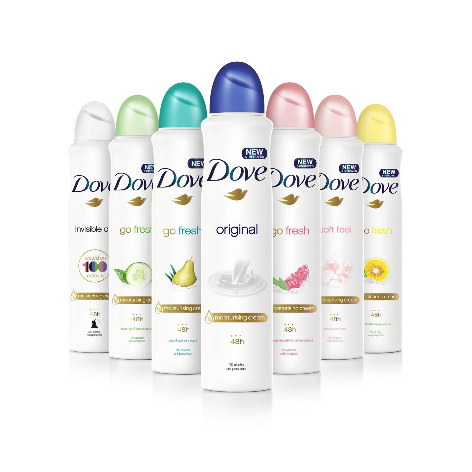 Product:Déodorant corporel en spray Dove original / Déodorant anti-transpirant en spray Dove Advanced Care Go Fresh