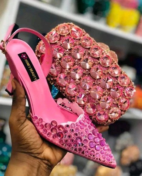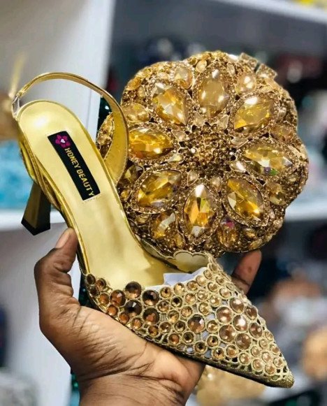 Faites briller le catalogue de vos clientes avec cet ensemble chaussure et pochette assortie. C’est la pièce indispensable pour les mariages, les galas et les grandes réceptions où le prestige est de mise.