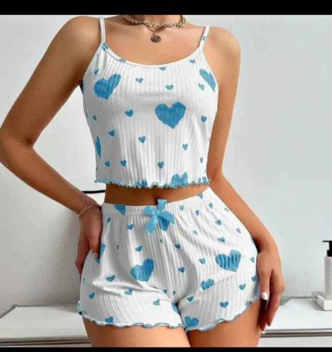 Nous vous proposons cet ensemble pyjama femme 2 pièces, un vêtement de nuit à la fois confortable, tendance et très demandé sur le marché. Grâce à son design moderne avec imprimé cœur et son tissu doux effet satin, ce produit est idéal pour les boutiques de vêtements, les vendeurs en ligne et les distributeurs souhaitant proposer un article féminin attractif et facile à vendre.