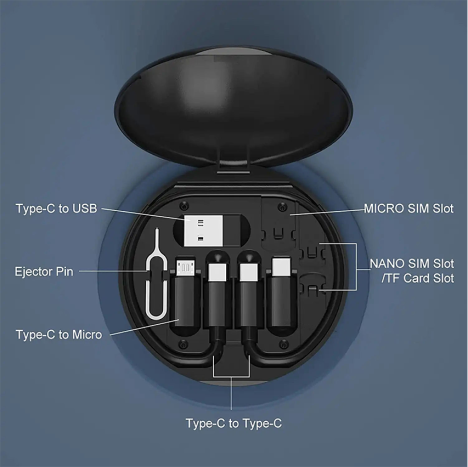 Polyvalence Totale : Câble Type-C + Adaptateurs iPhone (Lightning), Micro-USB et USB standard.