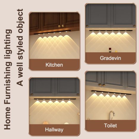 Product:Applique murale LED ultra-mince de 60 cm avec détecteur de mouvement, design moderne pour armoires de cuisine et placards, nouvelle version