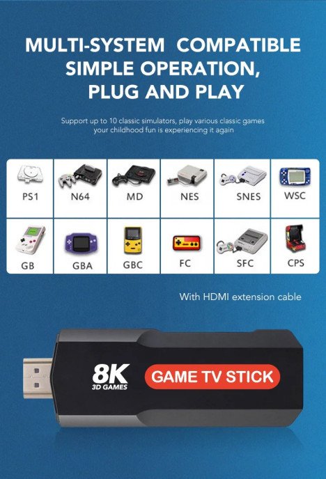 Le cadeau idéal pour les familles et les passionnés de nostalgie. Parfaite pour animer les soirées entre amis, occuper les enfants ou transformer un écran ordinaire en Smart TV connectée pour le streaming.