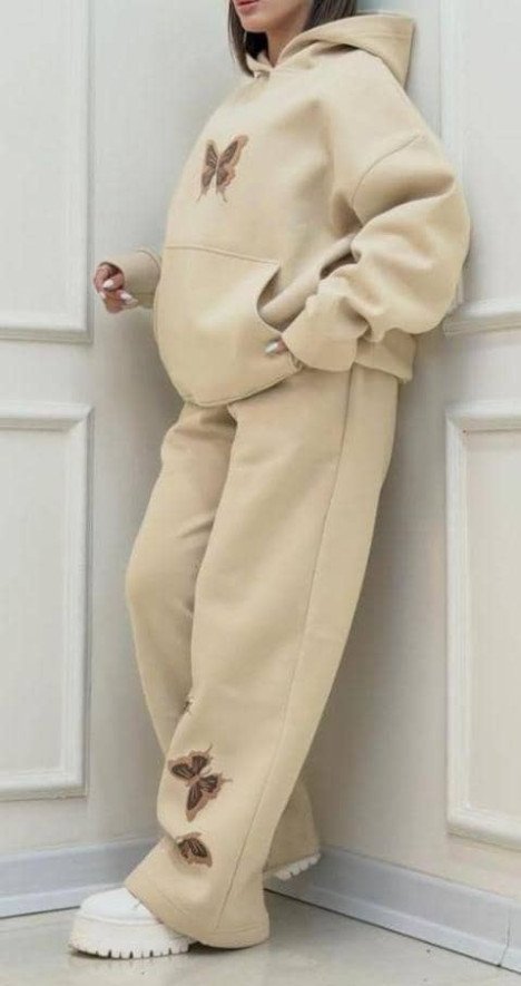 Design Artistique Exclusif : Orné de magnifiques broderies de papillons contrastés sur le sweat et le long du pantalon, apportant une touche de poésie et de modernité.