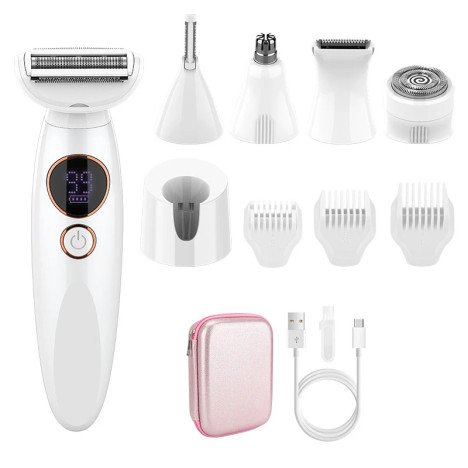 Product:Kit de Soin Féminin 5-en-1 Épilateur Électrique Étanche pour le Nez, les Sourcils, le Maillot, le Visage