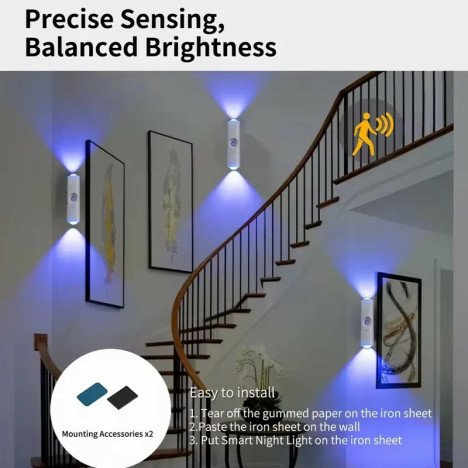 Applique LED Magnétique Sans Fil – Détection de Mouvement & Design 3D