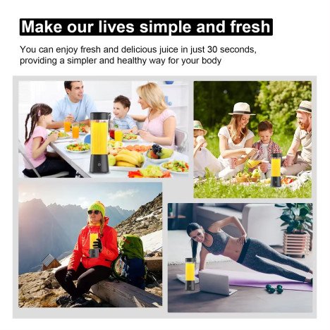 Nous vous proposons ce mini mixeur portable 400 ml, idéal pour préparer smoothies et jus à tout moment grâce à sa batterie rechargeable USB-C.